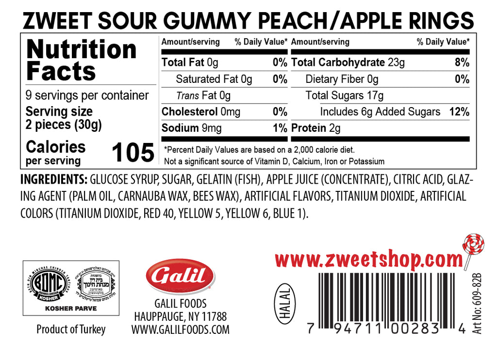 Zweet Gummy Sour Peach and Apple Rings 10 oz