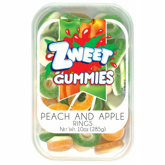 Zweet Sour Peach and Apple Ring Gummies are packed with a punch of fruity flavor. These chewy gummies are a fun treat for everyone!