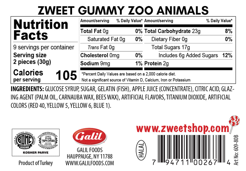 Zweet Gummy Zoo Animals 10 oz