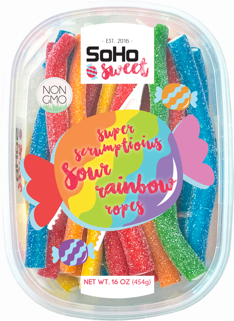 Delve into these delicious Sour Rainbow Ropes, with the perfect amount of chewy texture and a rainbow of flavors, filled with a sweet and sour cream! Each rope is uniquely flavored - which color is your favorite?